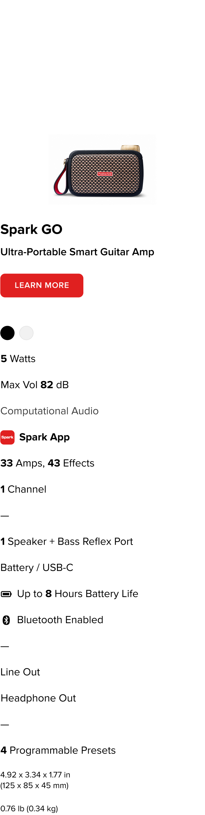 Spielen Sie, wann und wo immer Sie wollen, mit diesem App-geladenen kleinen Biest. Atemberaubender, raumfüllender Klang mit fortschrittlicher Akustik, die durch Computational Audio unterstützt wird. Nahtlose Integration mit Spark App. Bluetooth®-Lautsprecher, Audioschnittstelle, wiederaufladbarer Akku und Kopfhörer-/Leitungsausgang.