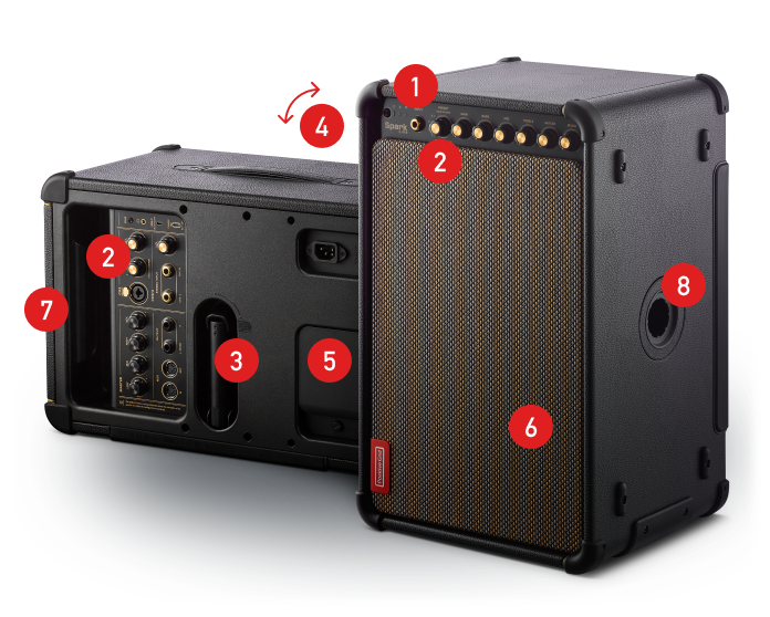 Spark LIVE est un ampli portable tout-en-un de 150 watts qui fonctionne simultanément pour la guitare, la basse, le chant et le clavier. Il est suffisamment puissant pour jouer avec la batterie lors d'une répétition d'un groupe complet ou pour se produire sur scène.