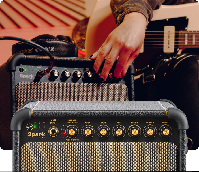 Spark LIVE redéfinit le gros son grâce à son capteur G polyvalent, qui détecte l'orientation et l'emplacement de l'ampli, s'adapte automatiquement à son environnement et règle son égaliseur pour un son optimal.