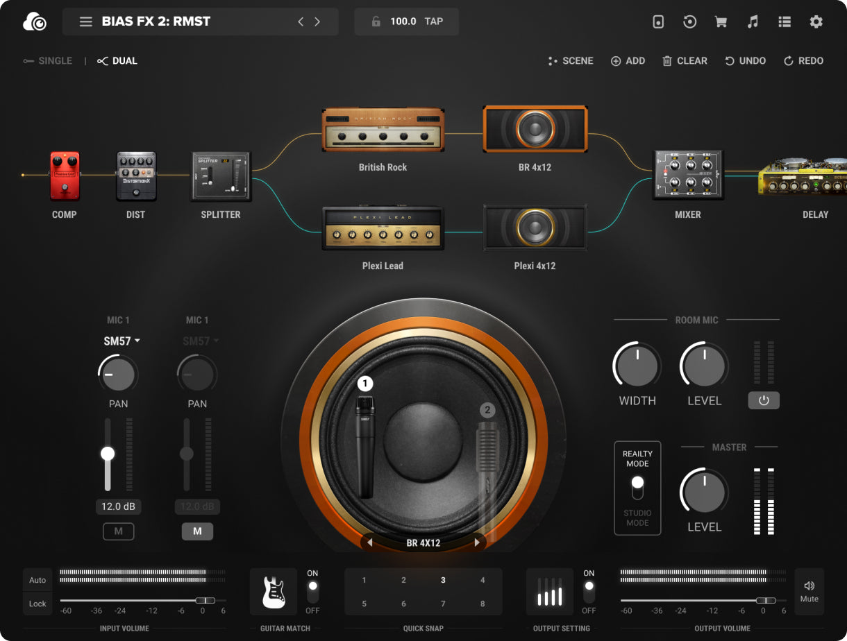 Les outils logiciels complets de BIAS FX 2, programmés avec précision, sont à votre disposition. Ajustez les réglages des amplis avant et arrière, du préampli et de l'ampli de puissance, ou sélectionnez parmi de nombreuses cabines et positions de micro pour créer et façonner le son qui vous inspire.