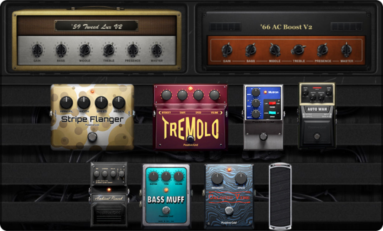 Des classiques rares. De nouvelles boutiques. Et même des pédales personnalisées animées par l'équipe de Positive Grid . Elles sont toutes là. Déposez ces éléments d'inspiration dans votre pédalier personnalisé, repositionnez-les et modifiez-les. Créez votre son à partir de la base ou inspirez-vous de milliers de préréglages.
