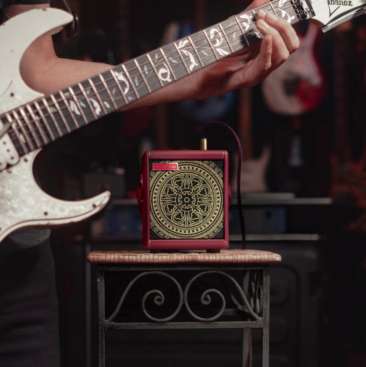 Une première pour les amplis customisés de la série Spark , Spark MINI Vai est équipé d'un câble de guitare léger de 10 pieds assorti, doté de connecteurs plaqués or 24K et enveloppé d'une gaine en nylon tissé bordeaux durable.