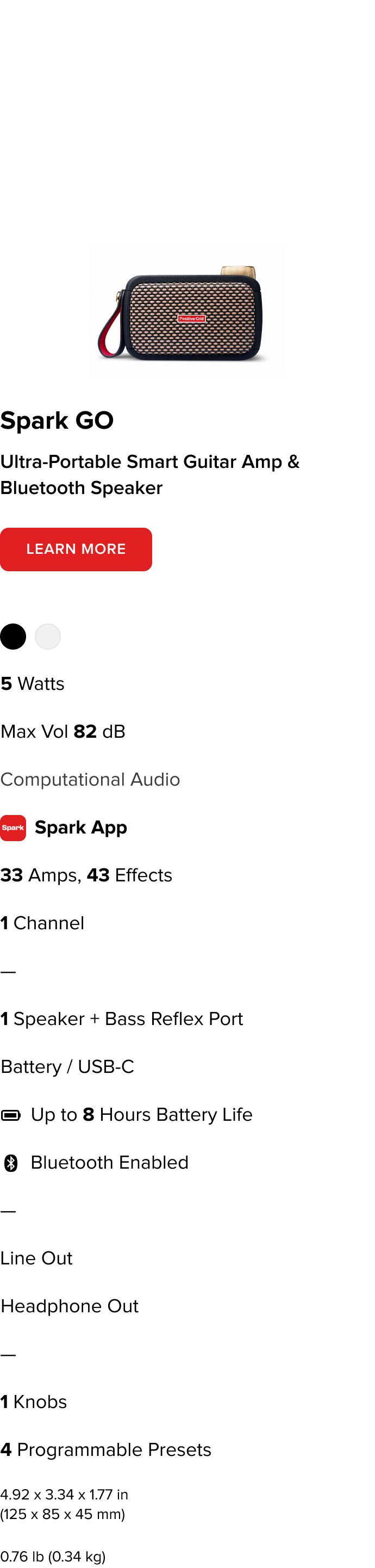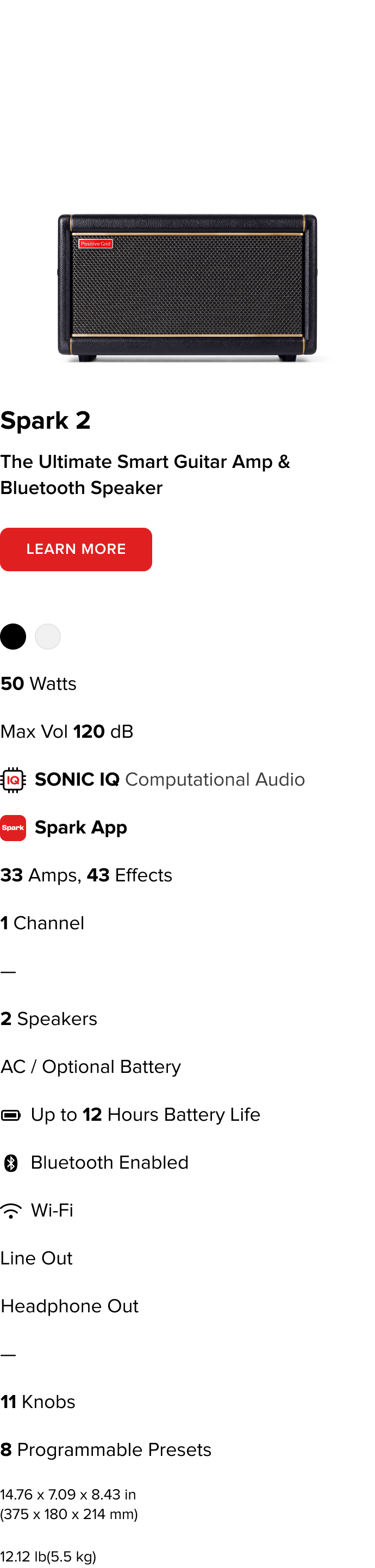 Play what you want, where you want, how you want. Keep the same settings and enjoy the smart features across all of your Spark amps with the Spark app.