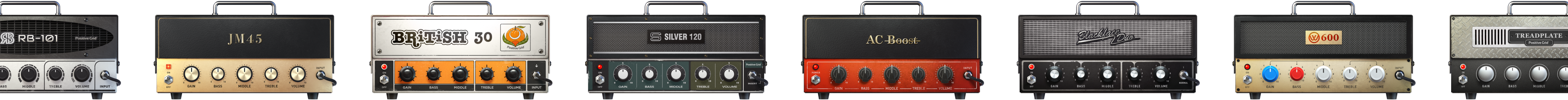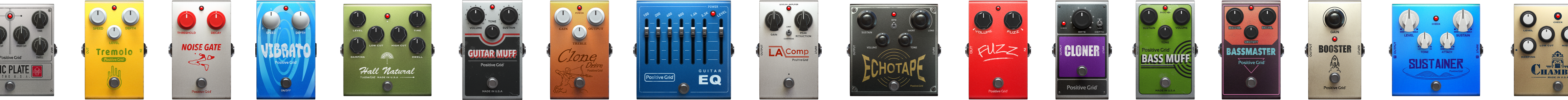 43 Effects (Noise Gate, Compressor/Wah, Distortion, Modulation/EQ, Delay, Reverb)