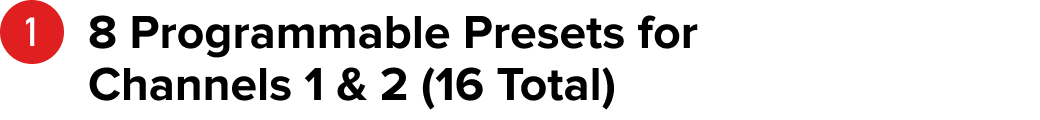 8 Fully Customizable Presets for Each Channel 1 & 2